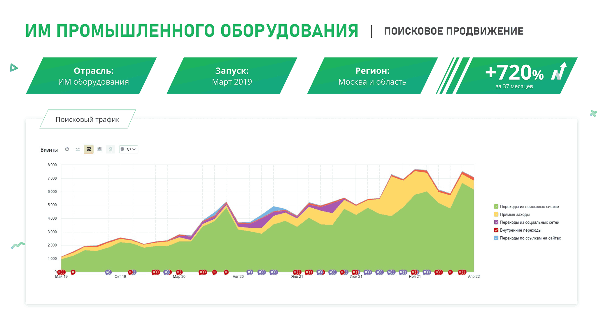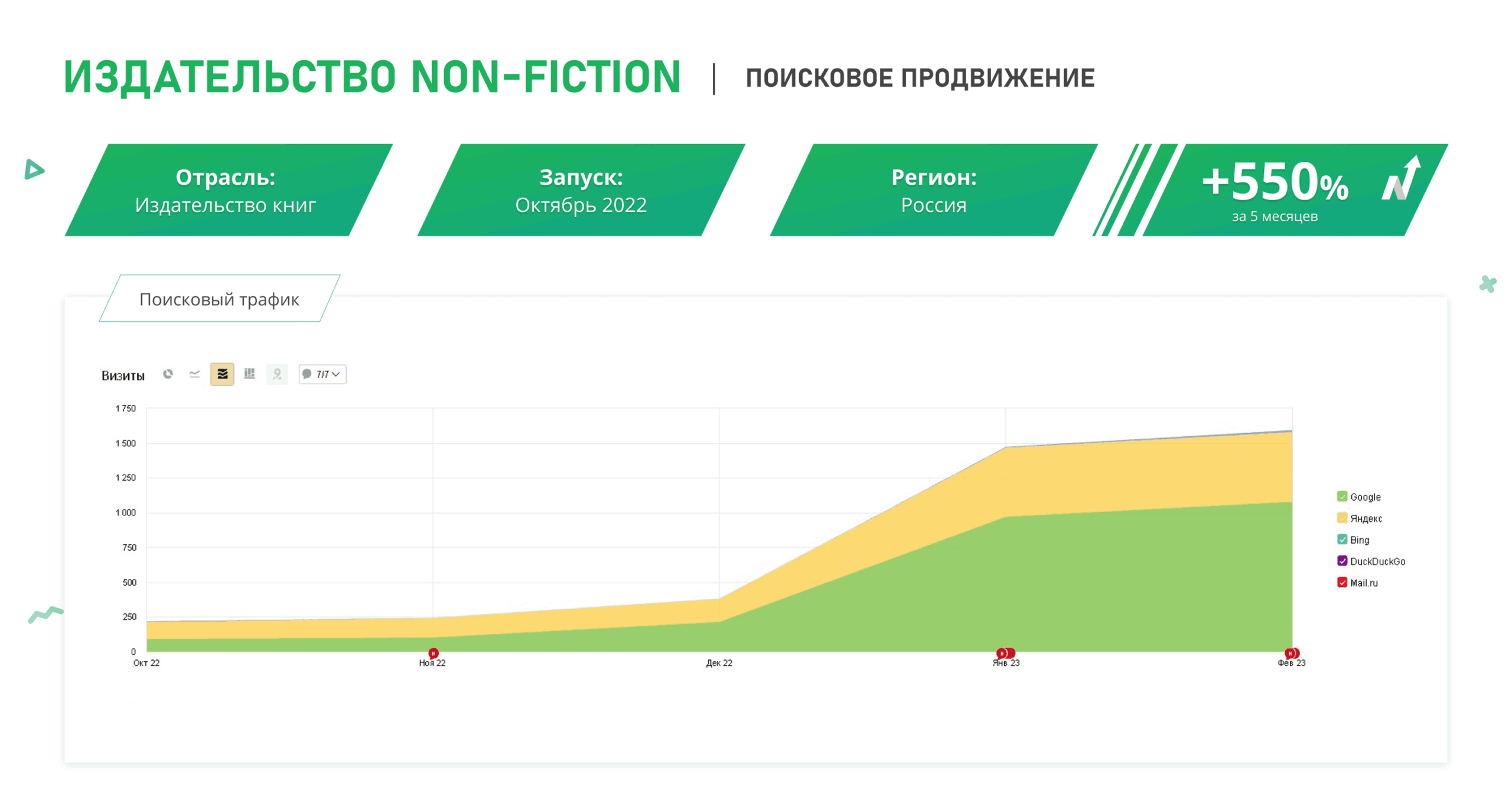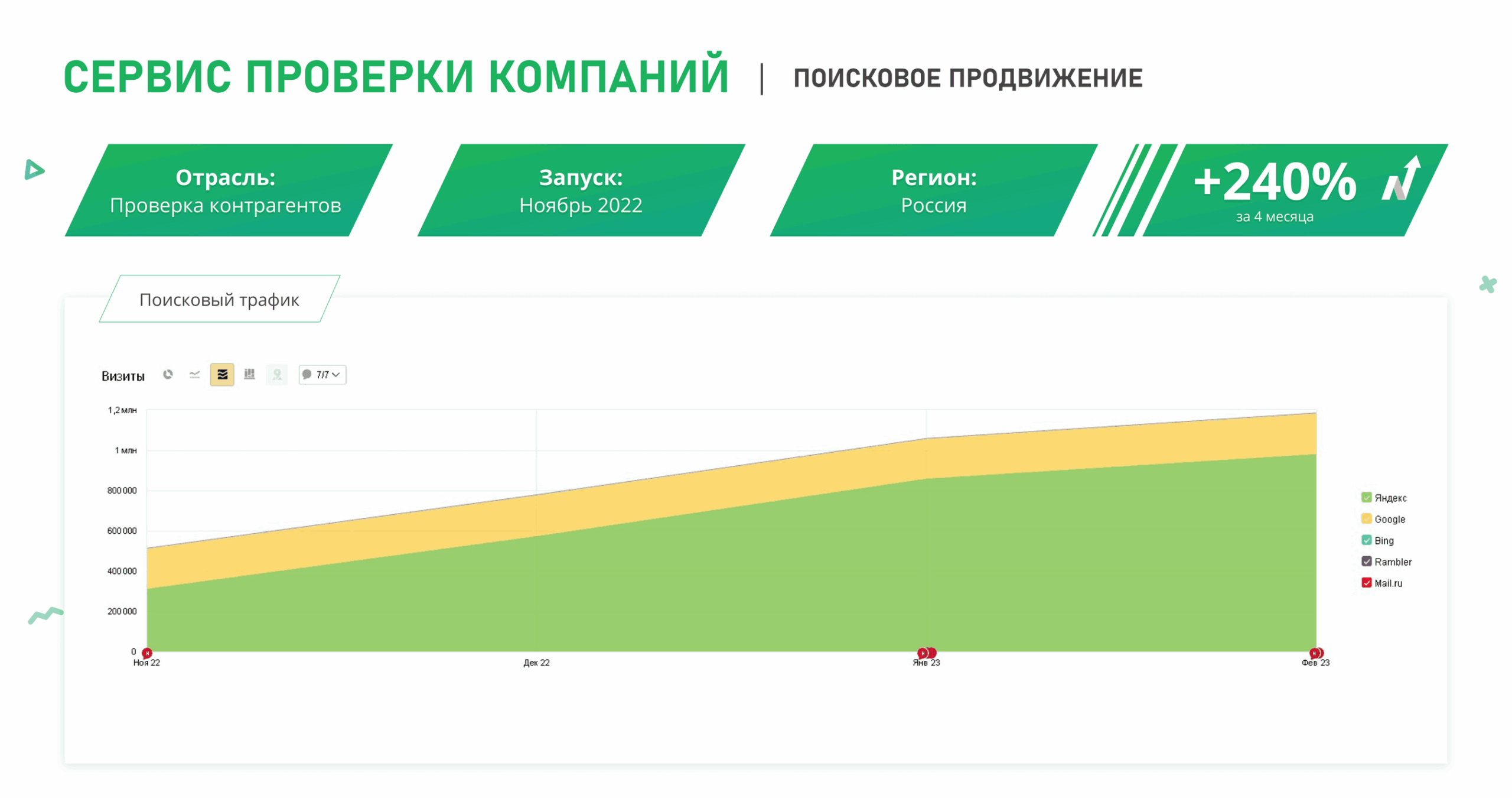 Первые изменения позиций по низкочастотным запросам заметны уже через 2–3 месяца после старта работ . Для выхода в ТОП-10 по высококонкурентным коммерческим запросам в среднем требуется от 4 до 6 месяцев системной работы. В одном из наших кейсов доля запросов в ТОП-3 выросла с 13% до 42% за 5 месяцев, а органический трафик увеличился на 34% . Мы не обещаем мгновенного результата, но предоставляем прозрачную отчетность и фиксируем прогресс на каждом этапе.