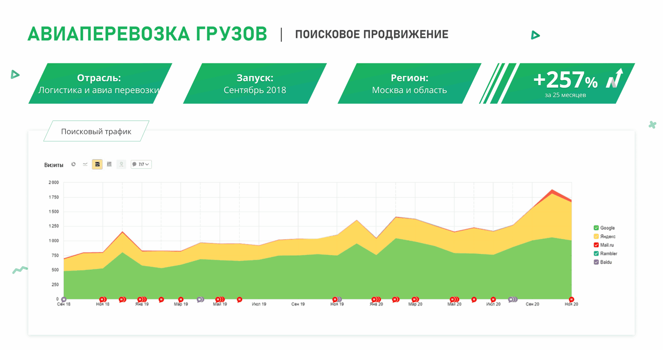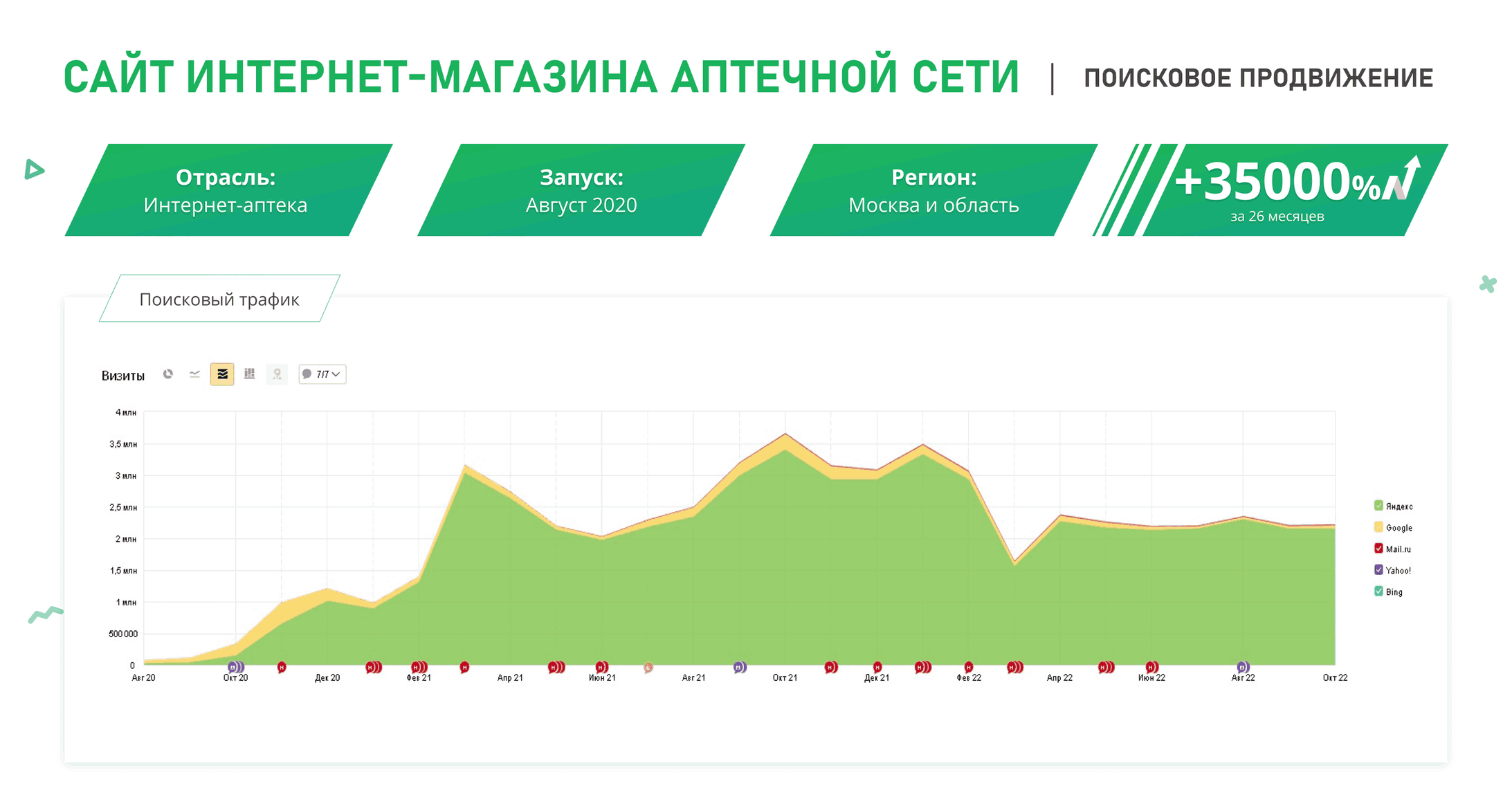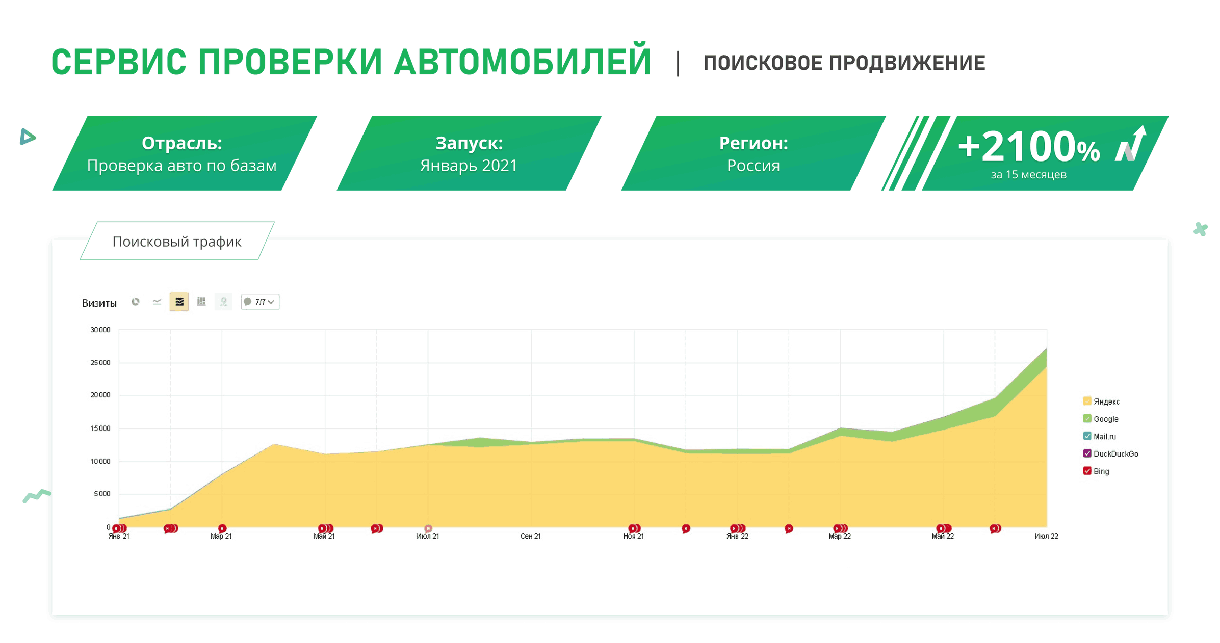 Первые изменения позиций по низкочастотным запросам заметны уже через 2–3 месяца после старта работ . Для выхода в ТОП-10 по высококонкурентным коммерческим запросам в среднем требуется от 4 до 6 месяцев системной работы. В одном из наших кейсов доля запросов в ТОП-3 выросла с 13% до 42% за 5 месяцев, а органический трафик увеличился на 34% . Мы не обещаем мгновенного результата, но предоставляем прозрачную отчетность и фиксируем прогресс на каждом этапе.
